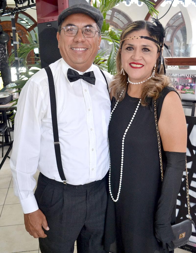 La recepción fue una auténtica fiesta de época: plumas, perlas, copas de cristal, música estilo jazz y decoración art déco envolvieron el salón con una atmósfera mágica, transportando a los asistentes a la era del Charleston y el swing.