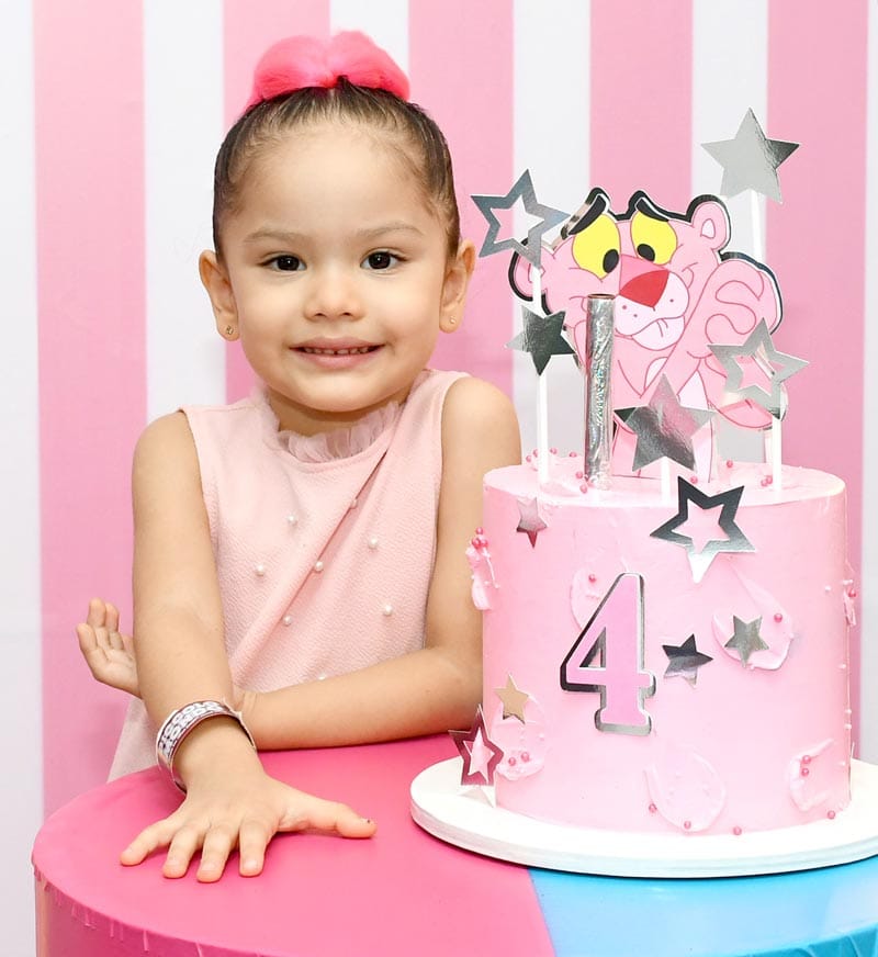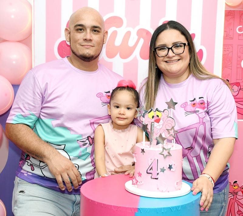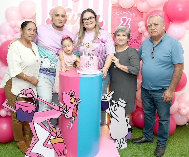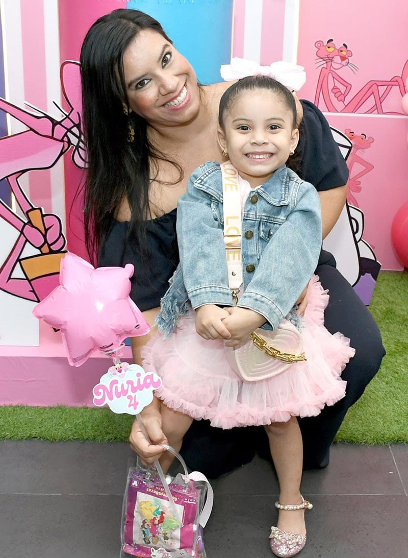 Con un escenario y decoraciones inspirados en la Pantera Rosa, la pequeña Nuria Macías Jiménez celebró sus 4 añitos de vida.
