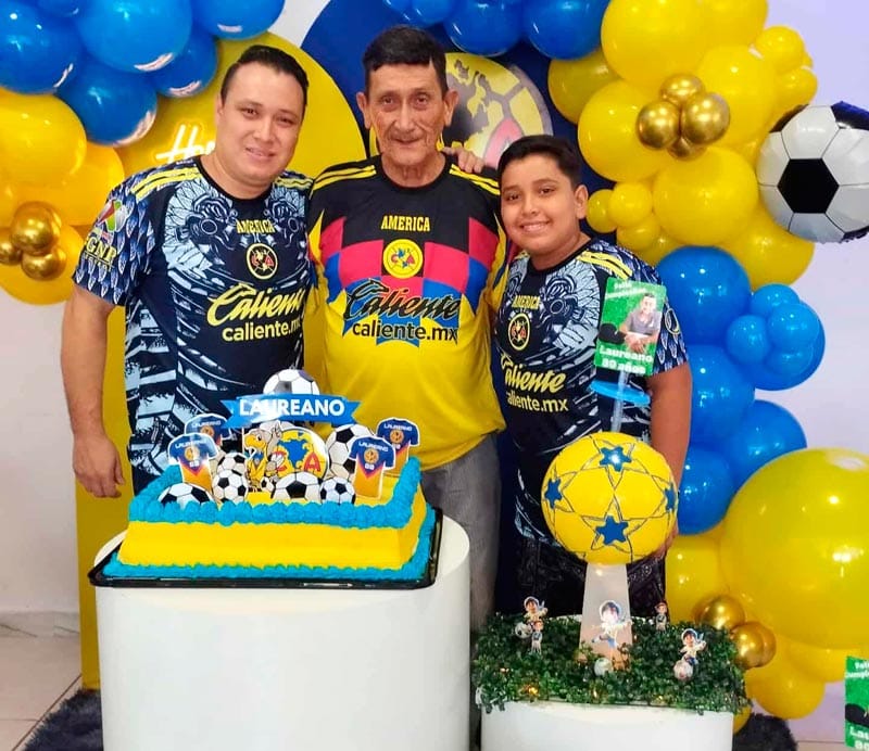 El festejo se realizó en el salón de eventos, el cual fue decorado de su equipo favorito “El América”, y él, orgulloso portó la playera oficial.