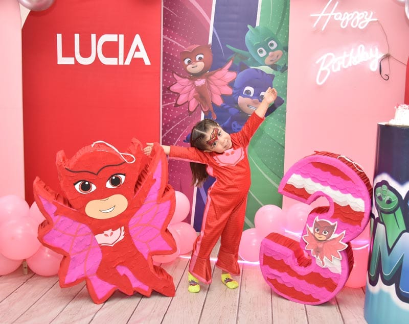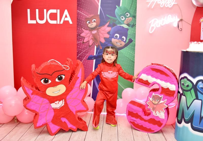 Abel Ainsa y Daniela Ramírez son los orgullosos padres de la pequeña Lucia Ainsa Ramírez, quien cumplió en días recientes sus 3 añitos de vida, es por tal motivo que diseñaron la fiesta perfecta para que su heredera y sus amigos del Colegio pasaran una magnifica tarde muy al estilo PJ MASK, ya que son los personajes favoritos de la festejada.