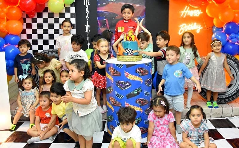 El lugar estuvo ambientado con música y decorado al estilo de Hot Wheels, así como el pastel, el cual se repartieron acompañados de dulces y exquisito ambigú entre los presentes.