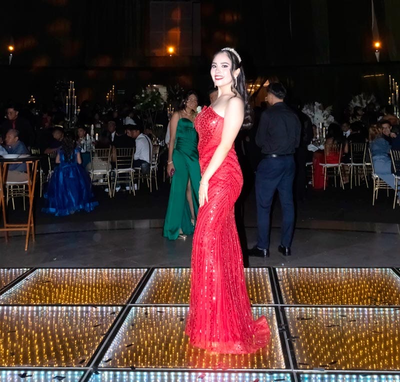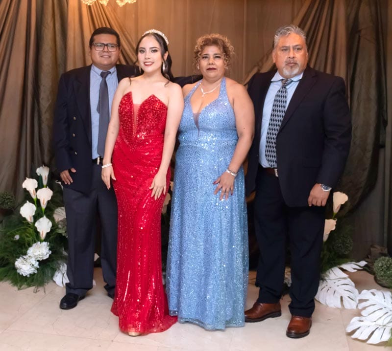En ese día tan especial estuvo acompañada de sus orgullosos padres Georgina García de la Cruz y Armando Román Notario, su hermano Jorge Armando Román García, sus padrinos Saúl Blanco y Rosa Valdés, así como familiares y amistades cercana a la familia.