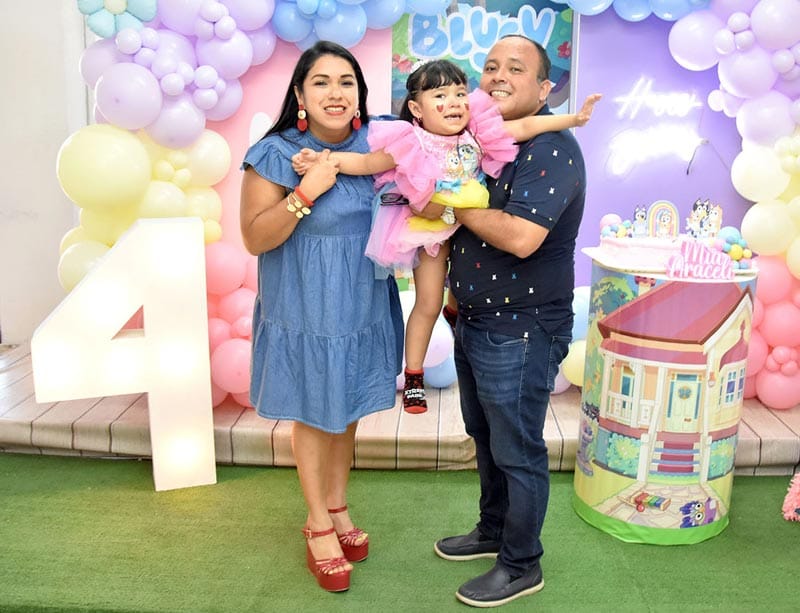 La bella Mia Araceli Escobar Miranda, fue festejada por sus cuatro añitos de vida con una piñata de su personaje preferido “el mágico mundo de Bluey”.