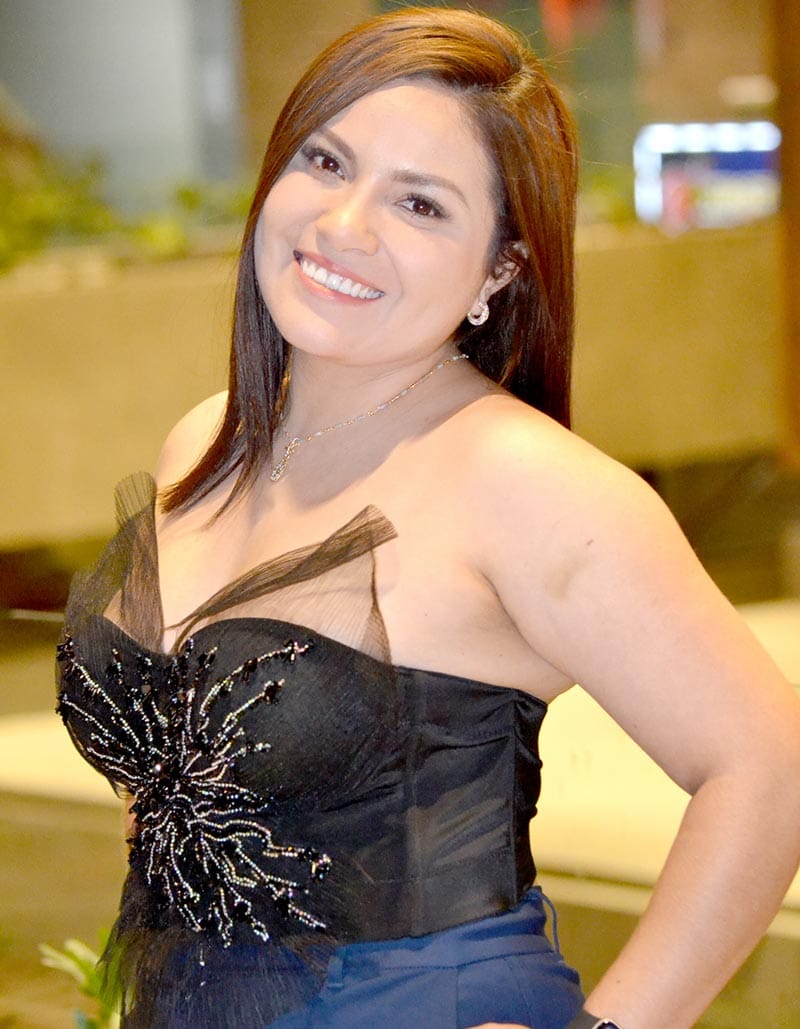 La festejada arribó ataviada en un bello mini vestido negro, que la hacía lucir espectacular.