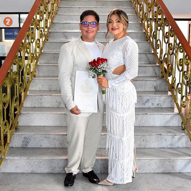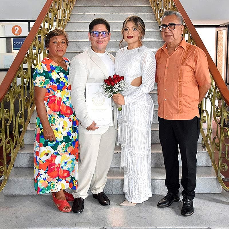 Muy enamorados captamos a Nereyda Alejandra Coto García y a Carlos Alberto Toto Vega, quienes en días pasados llegaron hasta el Registro Civil para unir sus vidas en legítimo matrimonio, tras varios años de largo noviazgo, en este mismo momento tan inolvidable estuvieron acompañados de sus respectivos padres, los señores Alicia Coto García y Carlos Toto Melchi, así como de familiares y amigos, quienes fueron testigos de este bonito acto de amor.