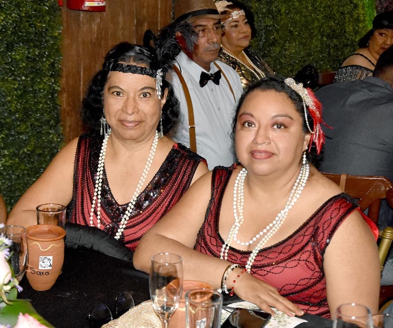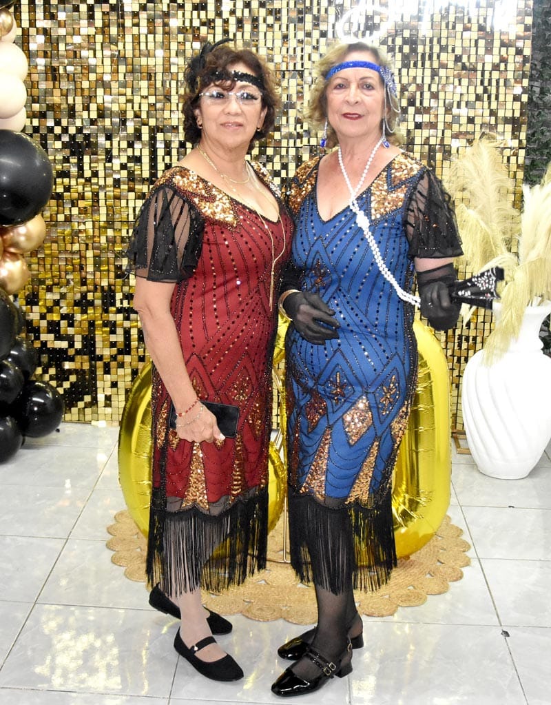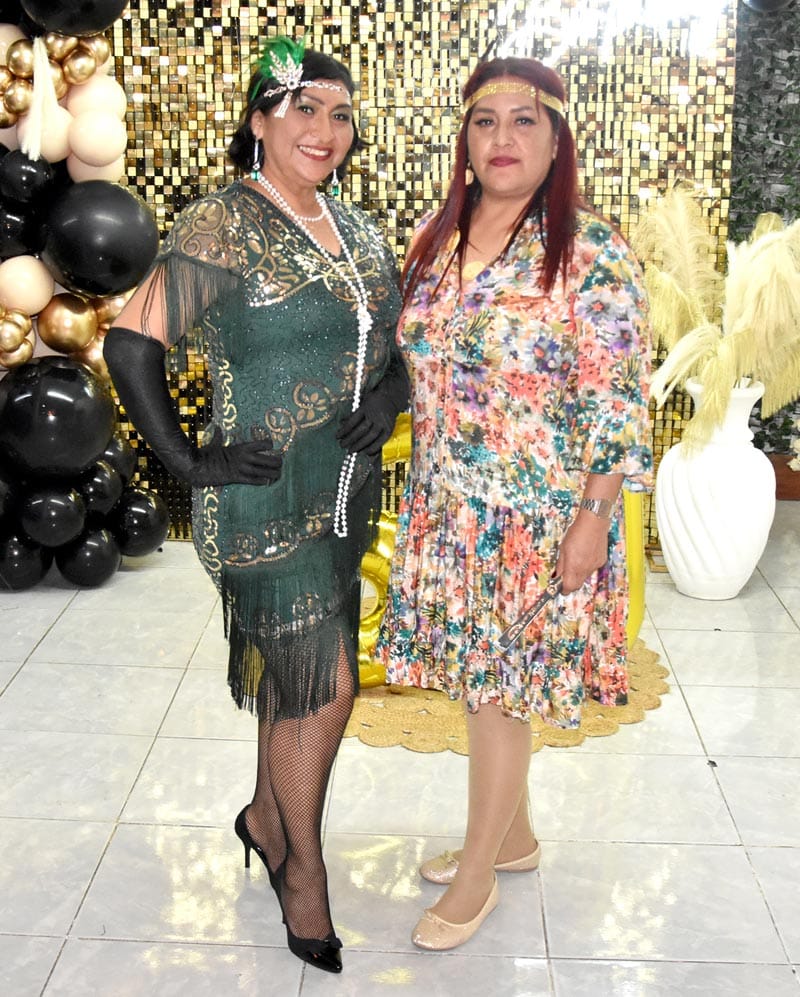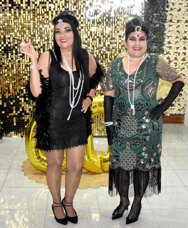 Los invitados se sumaron entusiastas a la temática, desfilando con elegantes atuendos de la época: vestidos con flecos, boas y sombreros tipo fedora que añadieron un toque de autenticidad y diversión al evento.