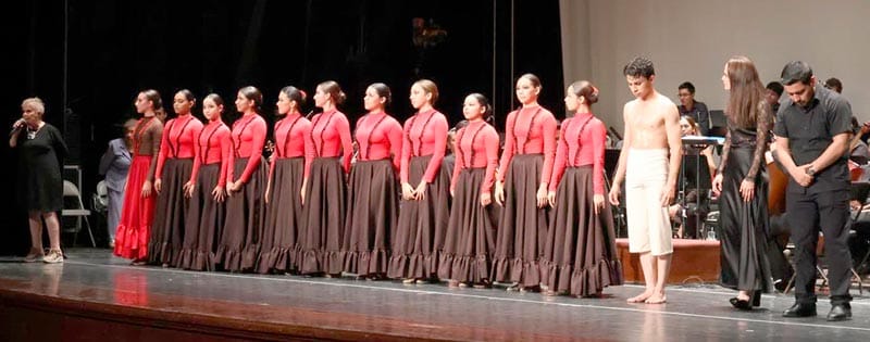 Posteriormente, de José Pablo Moncayo la orquesta interpretó Tierra de Temporal; y para concluir esta gran velada, en escena los bailarines de la Escuela Cubana de Ballet de Veracruz: