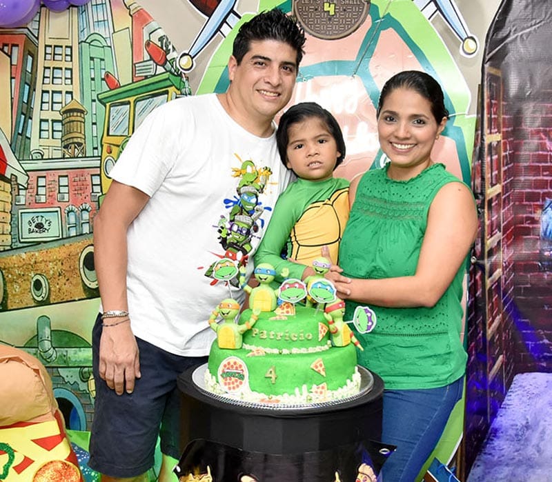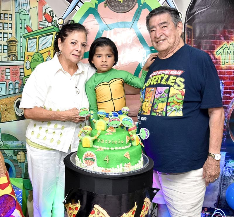 Un día especial fue el que vivió el pequeño Patricio Navarro Aguilera al cumplir sus cuatro añitos de vida, es por tal motivo que sus papis Patricia Aguilera de Navarro y Eskandar Navarro le organizaron una padrísima fiesta al estilo las Tortugas Ninjas, en el centro Deportivo Veracruzano.