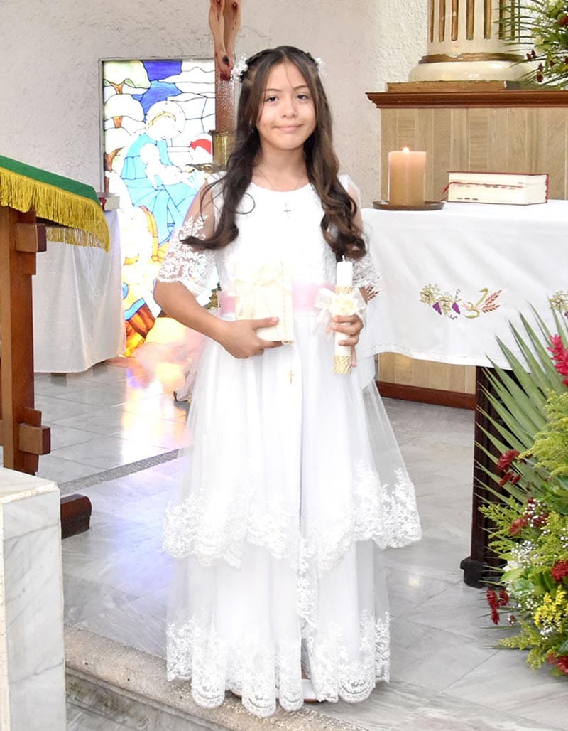 La iglesia San José abrió sus puertas a la bella Paulina Madrazo Castillo quien llegó hasta el altar de nuestro creador para recibir por primera vez el Cuerpo y la Sangre de Cristo, fue acompañada en todo momento por sus padres Perla Castillo y Manolo Madrazo, así como de su madrina Sofía García, su hermanito, abuelitos, familiares y amistades cercanas de la familia, quienes fueron testigos de ese bonito acto de fe y amor.