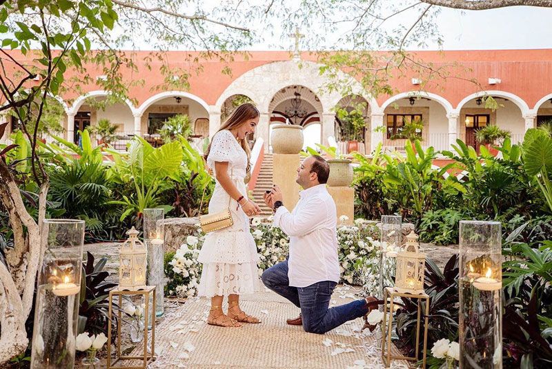 Durante el protocolo el novio le entregó el anillo de compromiso a su bella novia, la cual muy contenta y emocionada, le dijo; “¡Sí, sí, sí, sí me quiero casar contigo, sí quiero pasar esta vida y la próxima a tu lado, sí quiero crecer a tu lado y vivir todo al máximo juntos!”