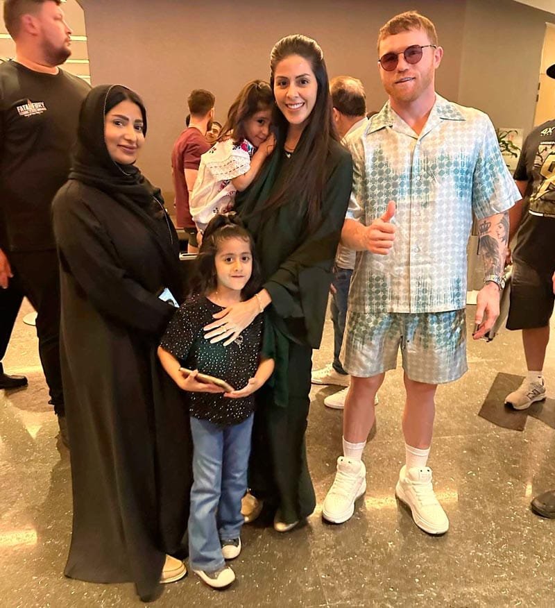 Hoy les traigo esta galería social de Nuestra Sociedad, quienes compartieron a través de sus redes sociales estas bonitas imágenes, y comenzamos con la guapa Adriana Zavaleta quien estuvo presente en la pelea de Saúl Canelo Álvarez en Riad, Arabia Saudita, junto con su familia, en donde al término de la pelea, tuvo la oportunidad de saludar y tomarse la foto del recuerdo con el Canelo.