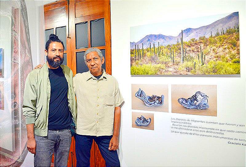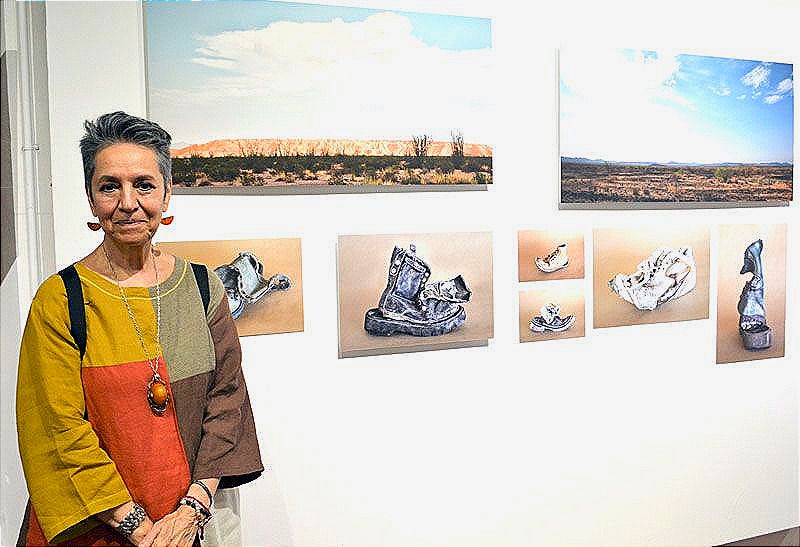 “Terra ignota, zapatos migrantes” es un viaje visual en el que la artista acompaña a las personas migrantes en la frontera norte, para mostrar sus experiencias durante las travesías que realizan en su búsqueda de mejores condiciones de vida. Son cerca de 100 fotos de diversos tamaños y soportes, de paisajes áridos, rostros, zapatos destruidos y retorcidos por el sol y los kilómetros que andaron.