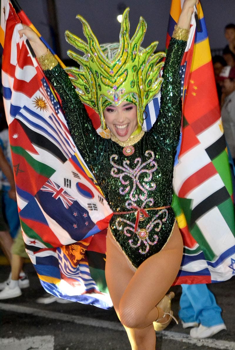 Las bastoneras de diversas academias también formaron parte del alegre contingente, luciéndose con su energía, coordinación y elegantes coreografías que encantaron al público que abarrotó las aceras del bulevar.