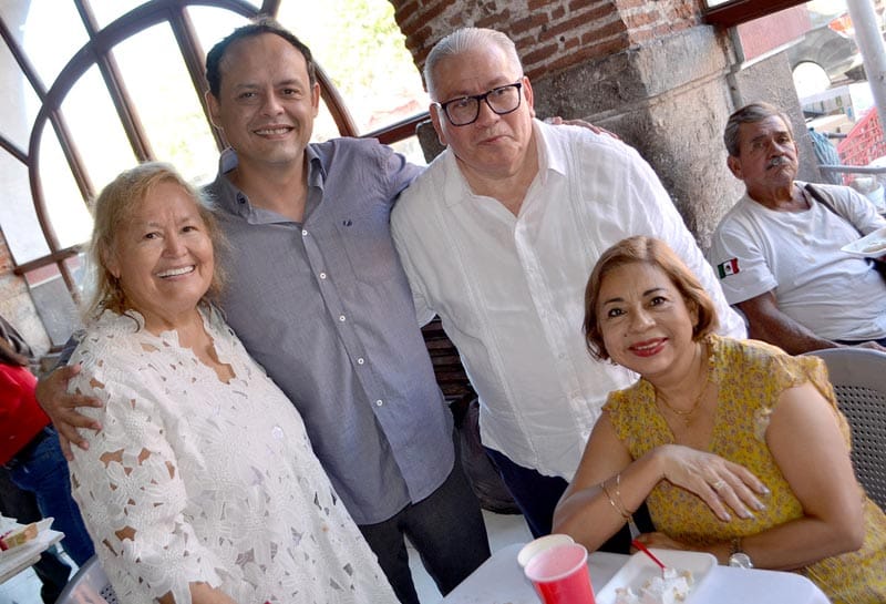 El ambigú del pachangón estuvo para chuparse los dedos: taquiza de guisados, frijolitos, zacahuil, spaguettis, tamales de elote y de masa, elotes con crema y chilito, pan de dulce, agua de jamaica, refrescos, cafecito del Gran Café de La Parroquia y qué decir de los cuatro pastelotes de aniversario, deliciosos; sin faltar el bailongo a ritmo de la orquesta La Sabrosura, el cantante versátil Saúl Rivera Zapata, Forever R&R y el tecladista Alfonso Aguirre.