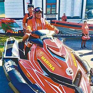 Continúa explicando Rafael que en el biombo está después la época moderna, que es cuando Veracruz tiene un boom y es el boom económico en el país y empieza a haber turismo; la parte de atrás de la estructura es más interactiva, la gente que visite la exposición puede escribirle un mensaje al mar y dejarlo en el buzón y es ahí donde podemos imaginarnos el futuro del Veracruz nadable”.