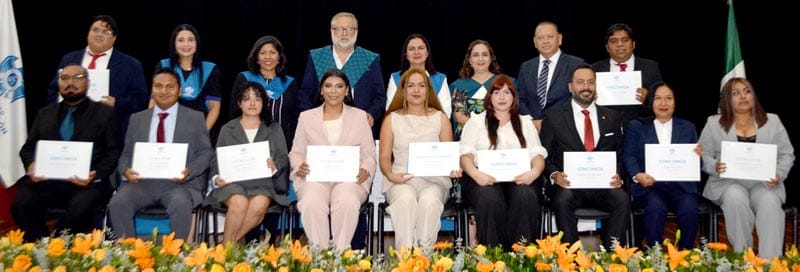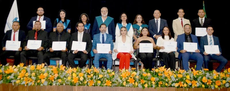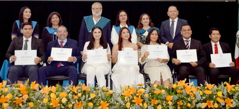 Se entregaron las constancias a los graduados de las cinco maestrías y posteriormente los reconocimientos especiales Cum Laude, a los alumnos con un promedio mínimo de 9.5: Indra Álvarez Limón, Ana Victoria Ascención Sánchez, Rita del Carmen Bazán Rojas, Paola Giovanna Cárdenas Rendón, Karen Xilonen Domínguez Gómez y José Enrique Varela Cataneo, de la maestría en Derecho Fiscal; Gerardo Noé Cisneros Ortiz, Luis Salvador Contreras López, Irán Lagunes Sosa, Luis Eduardo Montero Lara, Luis Miguel Vázquez Rivera, Francisco Vela Atilano y Jacquelin Veneroso Segura, de la maestría en Derecho Constitucional y Amparo; Aldahir Luna Ramos, Francisco Mena García, Ana Fernanda Orta Quevedo, de la maestría en Derecho Privado; Evelin Tibisay Bravo Villagómez y Juan Pablo Rivas López, de la maestría en Derecho Penal y Técnicas de Litigación Oral; Tania Domínguez Lechuga, Nayeli Abigail Jiménez Hernández, Jéssica Nohemí Román Rivera, Hannia Vargas Cerón y Heber Zagada Santiago de la maestría en Educación.