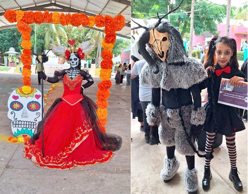 En el domo de la mencionada institución, alumnos de primero, segundo y tercero participaron en la pasarela de monstruos por el Halloween y de Catrinas y Catrines por día de Fieles Difuntos, para calificar los disfraces se contó con un jurado integrado por la bailarina y coreógrafa, Michelle Eiza Aguirre Ortiz y el actor Humberto Cruz Méndez, resultaron ganadores Kendra Celeste Martínez (Catrina) e Irving Miguel García con su disfraz de minotauro, acompañado de su hermana.
