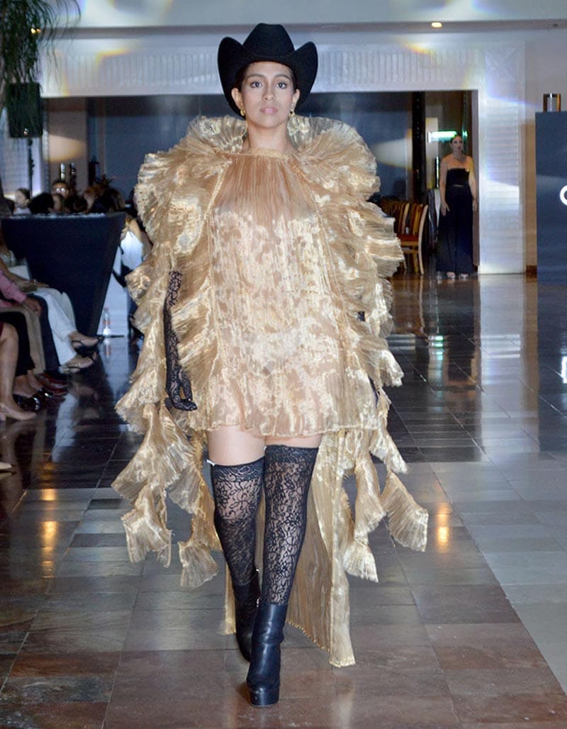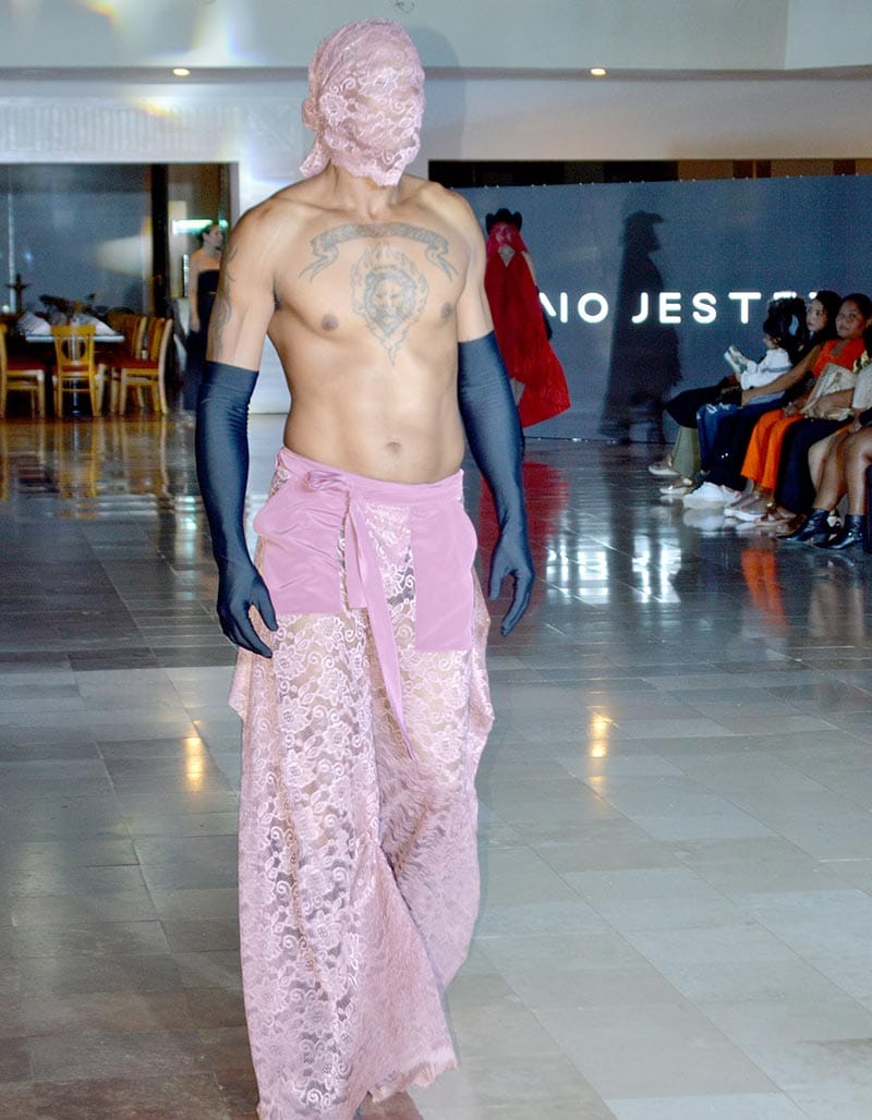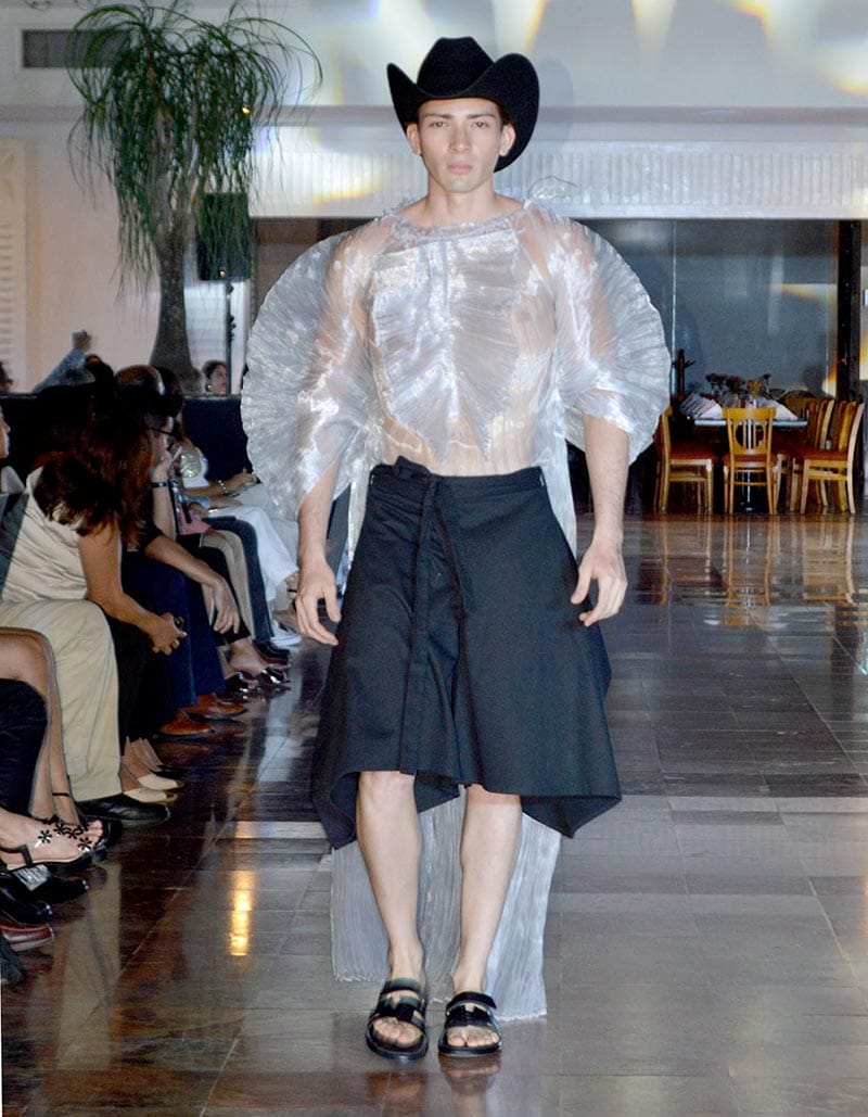 Esta noche las texturas en los textiles fue una de las principales propuestas de estos diseñadores, quienes además nos deleitaron la pupila con diseños muy estrafalarios y hasta un tanto exóticos, que muchos "Hermanes" obvio se atreverían a usar para llegar en discretos al antro.