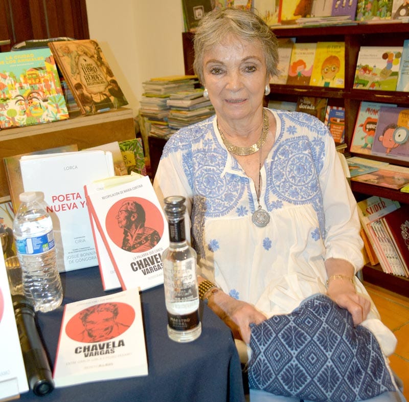 Me di cuenta que siempre hay la muerte, la vida, es Chavela hablando con los muertos, con este imaginario suyo, sus fantasías; era una gran admiradora de la poesía de Lorca y a veces llegaba y me decía que estaba desveladísima, porque se la había pasado cantando con Federico García Lorca; por eso llamé así el libro, y porque los muertos están vivos, como en Pedro Páramo”, detalla la escritora.