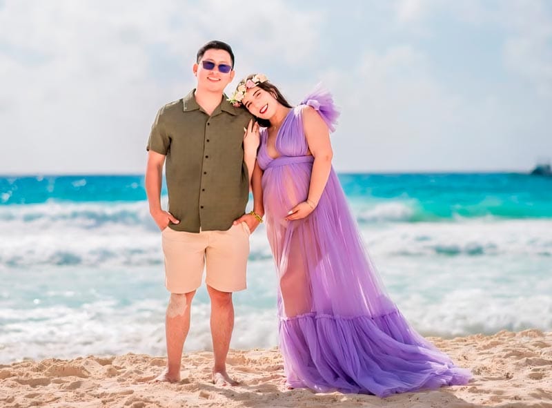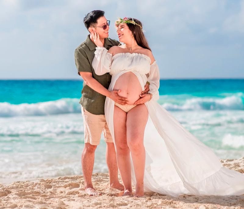 Enmarcados por los tonos turquesa del Caribe mexicano y la suavidad de la arena blanca, Rita Gómez y Gerardo Ku protagonizaron una emotiva y elegante sesión fotográfica para anunciar la llegada de su pequeña Emma Sofía, quien ya es esperada con amor e ilusión.