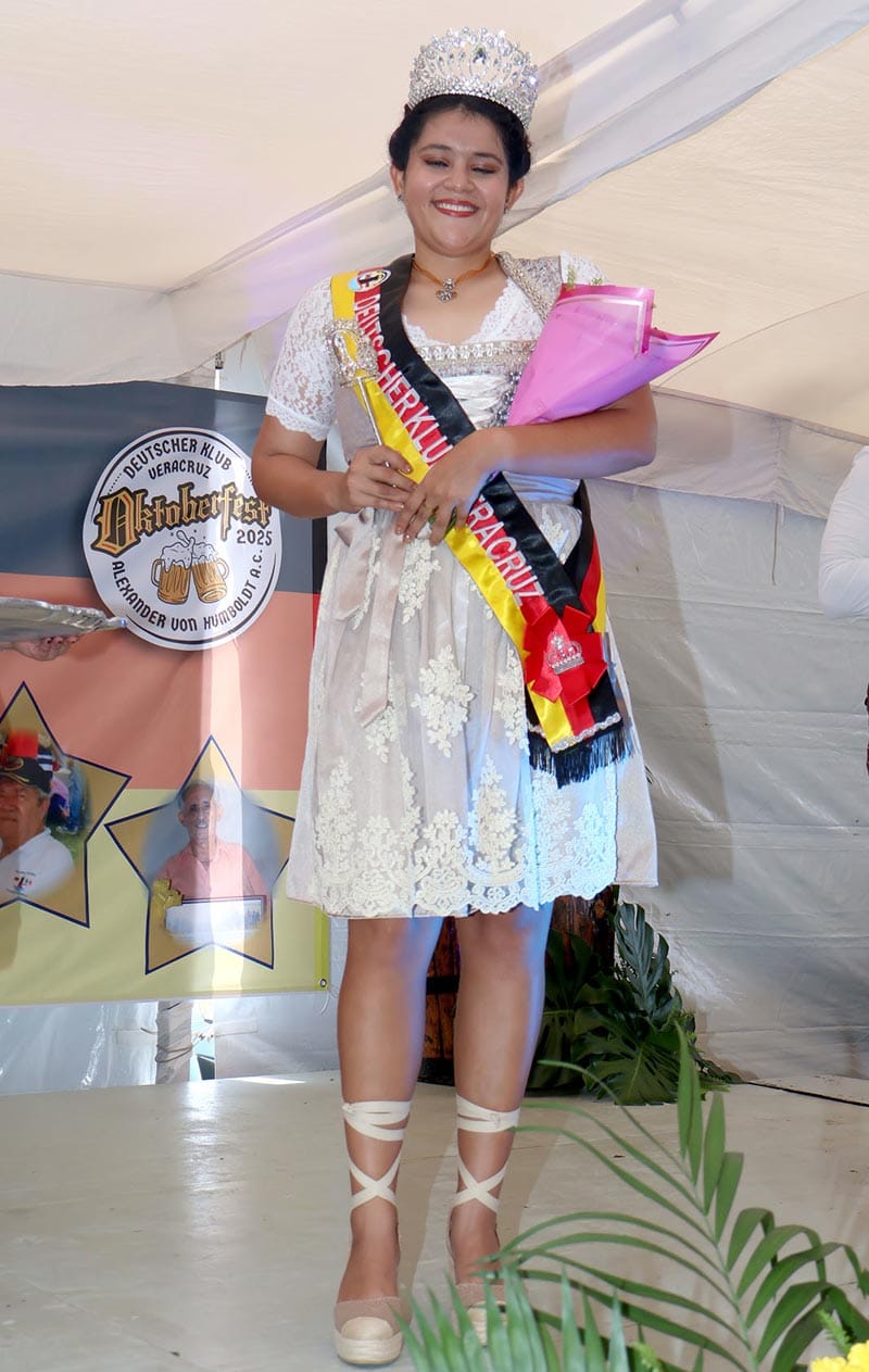 La celebración continuó con la coronación de la nueva reina del Club Alemán, Ana Victoria Lule Rangel, en una emotiva ceremonia encabezada por Antonio Marquínez, cónsul honorario de Alemania; Erika Rempening, cónsul emérita de Alemania; y la presidenta del club, Odette Rullán.
