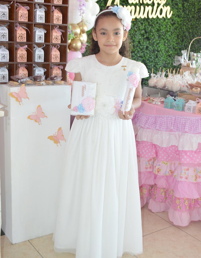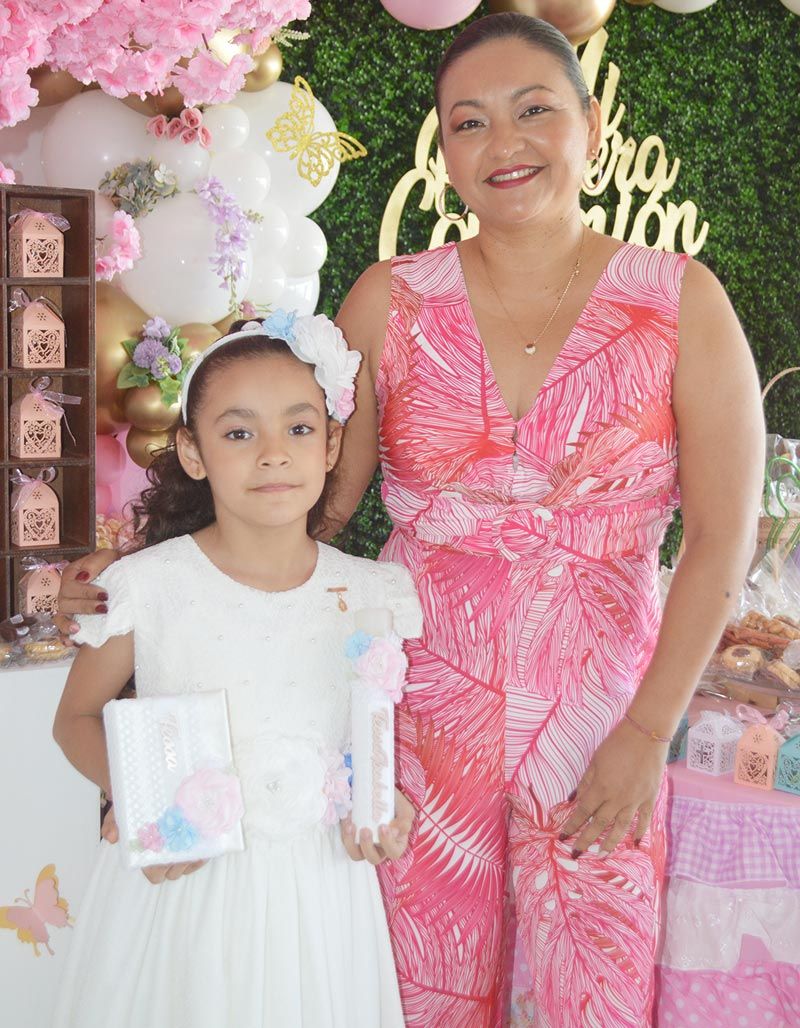 Durante la ceremonia estuvo Nahomi Domínguez, mamá de la ahora ya comulgante, a quien apapachó y deseó lo mejor ahora que recibió el sacramento de la Primera Comunión.