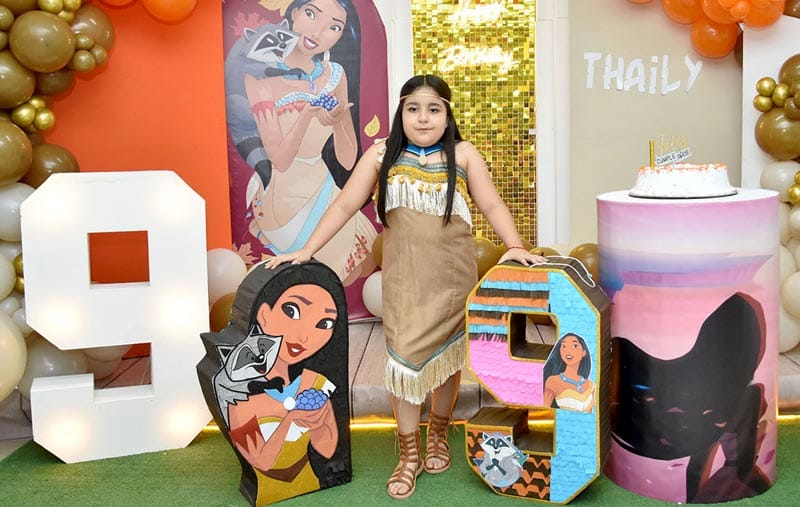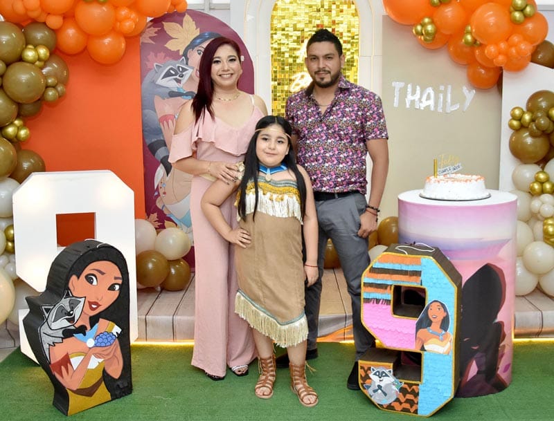 Con una emotiva y concurrida fiesta fue como la pequeña Thaily Morales Valdivia celebro sus 9 añitos de vida, es por tal motivo que sus papis Esbeidy Valdivia y Eduardo Morales se encargaron de convocar a sus amiguitos y familiares para que llegaran hasta el salón a felicitar y abrazar a su heredera, quien ya los esperaba disfrazada de Pocahontas ya que es su personaje favorito.