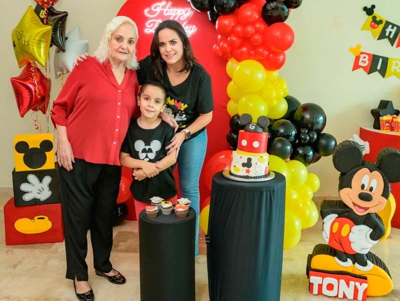 En un ambiente familiar lleno de color, risas y mucha emoción, el pequeño Tony Pinilla Balmori celebró su sexto cumpleaños en su hogar, donde sus orgullosos padres Juan Antonio y Faby Balmori de Pinilla prepararon una gran fiesta con temática de Mickey Mouse, cuidando cada detalle para hacer de esta fecha una experiencia inolvidable.