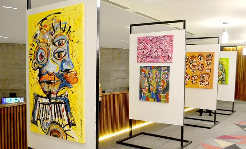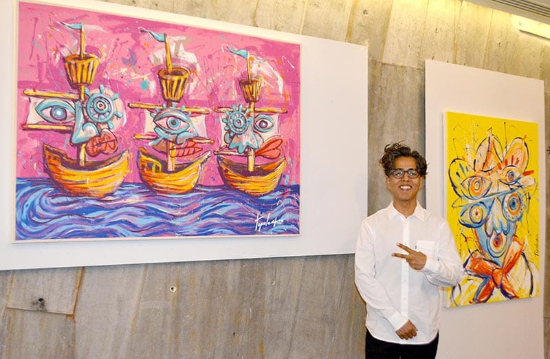 “En esta exposición hay un hilo conductor de la onda expresionista y surrealista, de la paleta de color, la algarabía veracruzana muy evocada al mar. Hay carabelas, un rostro inspirado en la parte totonaca, en las caritas sonrientes; las embarcaciones de galeones, navíos, un poco la historia de Veracruz en sus inicios, en la época de piratas”, comenta el expositor.