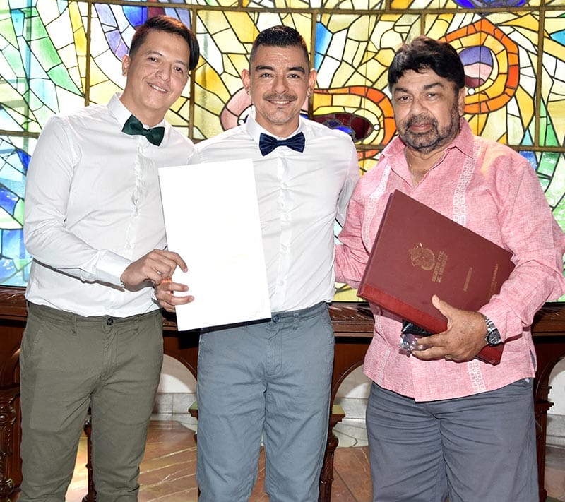 Con una emotiva ceremonia civil, la pareja formada por Ángel Parra y Daniel Mirón Castillo decidieron unir sus vidas en legítimo matrimonio ante la ley del hombre, en donde ambos se realizaron el juramento de amor y fidelidad.
