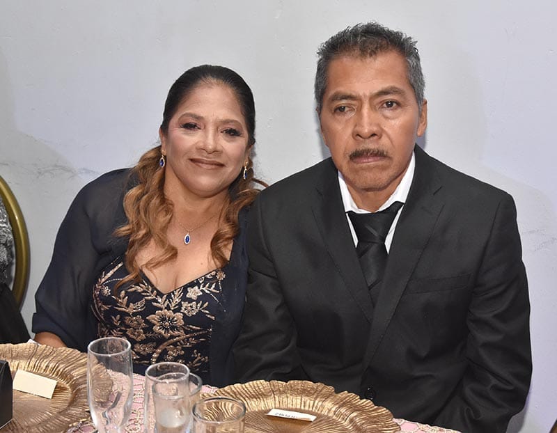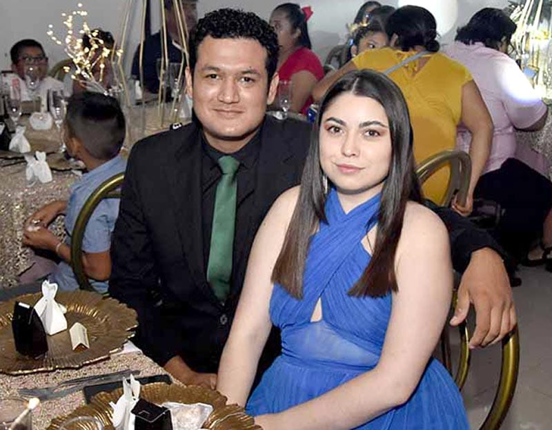Al término de la homilía los presentes se trasladaron al salón “Rollalty”, el cual ya se encontraba decorado con una espectacular tendencia floral, siendo recibidos los novios por parte de la concurrencia con fuertes aplausos, quienes llegaron saludando y bailando su primera canción como esposos, posteriormente se llevó el brindis, dando el paso a la cena, la cual fue acompañado de finas bebidas.