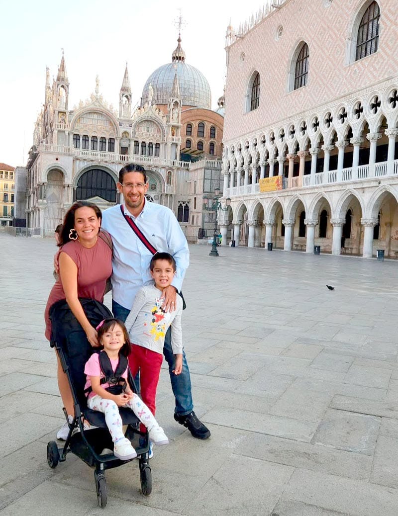 Toño y Faby Balmori de Pinilla nos envían una romántica imagen desde los canales de Venecia, acompañados de sus hijos, disfrutando de la magia y el encanto de esta icónica ciudad italiana.