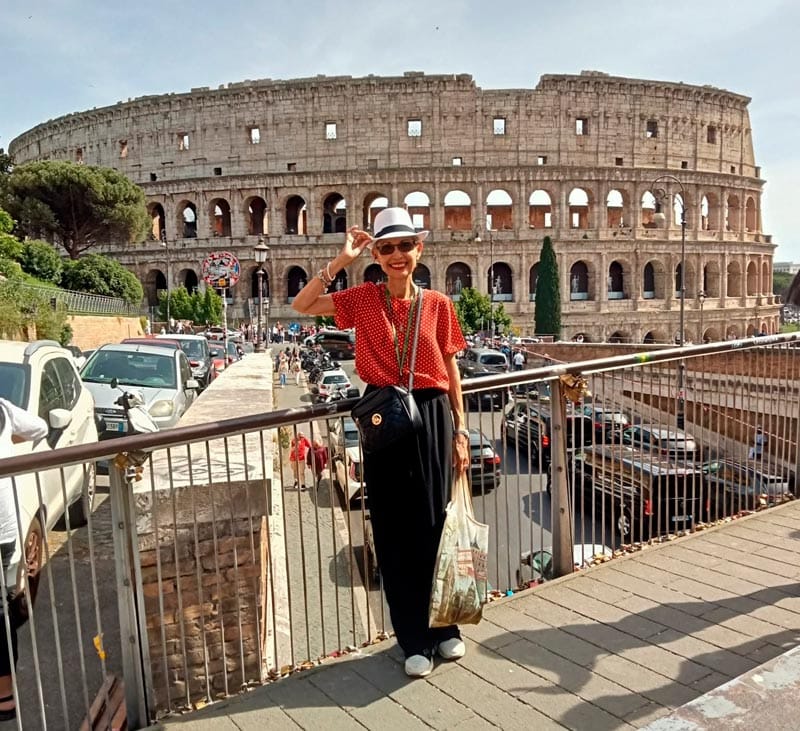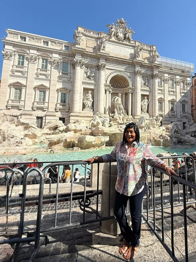 Desde Roma, Lulú Báez posa frente al imponente Coliseo Romano, mientras que Lupita Vargas de Mundo nos comparte una instantánea llena de alegría en la Fontana di Trevi, donde la tradición dicta lanzar una moneda para asegurar el regreso.