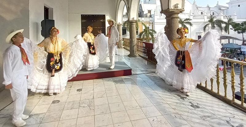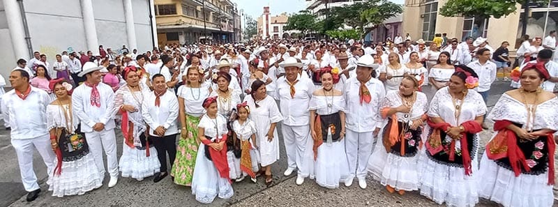 Durante el trayecto se escucharon cánticos de La Bamba y Veracruz, así como algunos zapateados y sones que engalanaron esta actividad coordinada a través de la dirección de Cultura y Recreación, y que concluyó con una gran verbena en la Plaza de Armas, donde continuó la celebración en el Corredor Gastronómico, el Fandango, el Flashmob La Bruja y el concierto de la Banda Municipal.