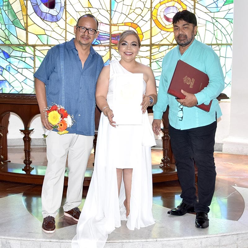 En este inolvidable momento estuvieron acompañados por sus respectivos hijos Karime, Kaleb Libreros, Alejandra y Maximiliano Sánchez García, así como de familiares y amigos, quienes estuvieron muy atentos durante el casamiento y fueron testigos de este bonito acto de amor.