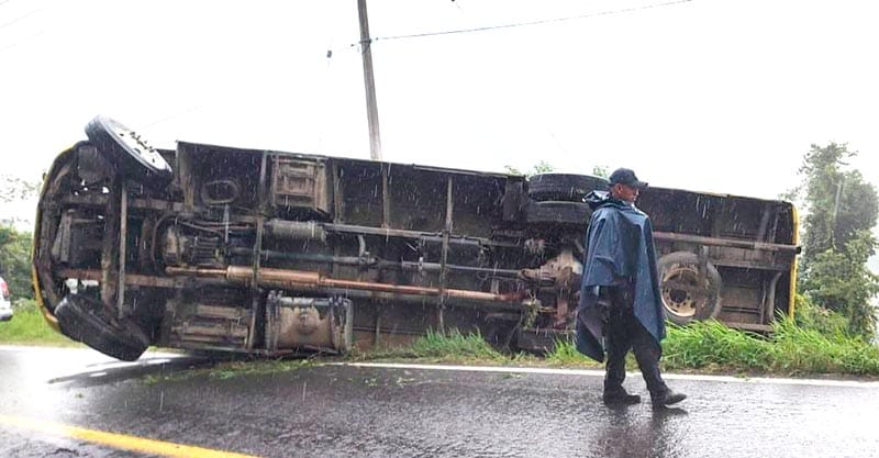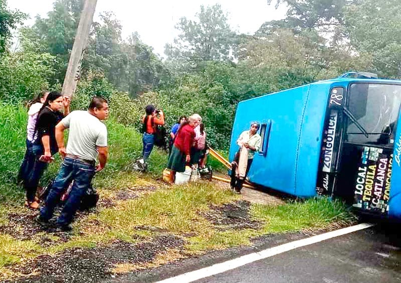 La tarde del domingo, operadores de la línea de emergencias 911 reportaron una volcadura con pasajeros lesionados en la comunidad Atlanca, municipio de Los Reyes.
