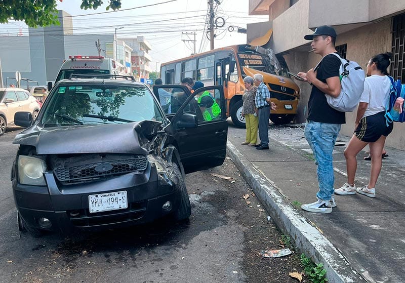 Un accidente de tránsito entre una camioneta particular y un autobús de pasajeros dejó alrededor de diez personas heridas y daños materiales considerables en el fraccionamiento Reforma de esta ciudad de Veracruz, en la tarde de ayer jueves.