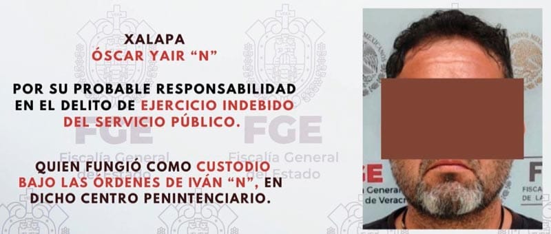 En Xalapa fue detenido Óscar Yair “N”, también custodio bajo las órdenes de Iván “N”, es acusado de ejercicio indebido del servicio público.