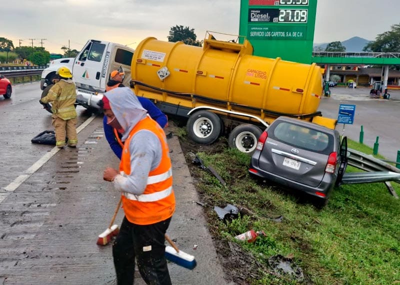 También registró daños un automóvil Chevrolet Chevy tipo Monza color blanco, una camioneta Chevrolet Equinox color azul marino, un taxi Nissan Tsuru de Fortín con número económico 305, además camión pipa marca Dina color amarillo y una camioneta Toyota Avanza, color gris.