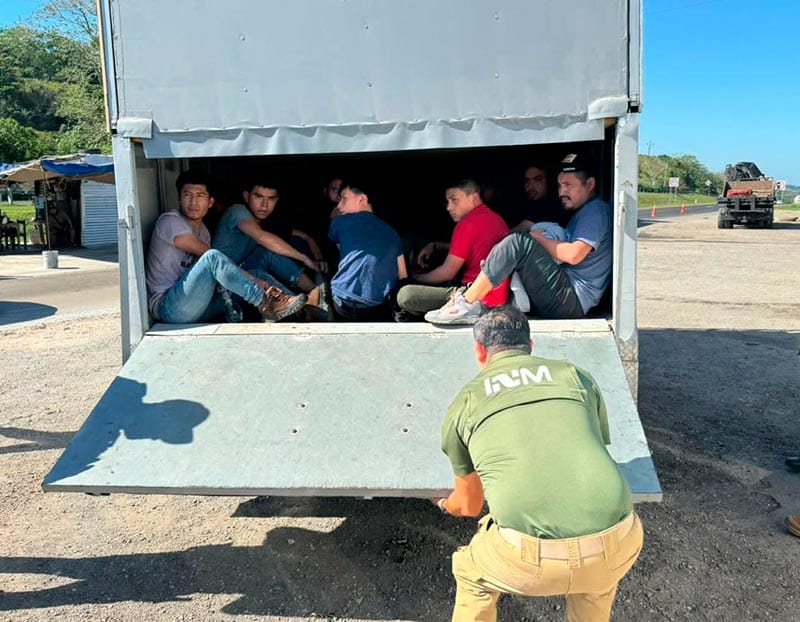 Los extranjeros fueron asegurados mediante un operativo coordinado entre elementos de la Guardia Nacional, la Secretaría de la Defensa Nacional (Sedena) y agentes del Instituto Nacional de Migración (INM).