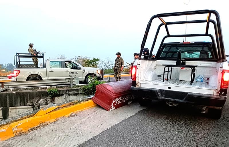 Los conductores reportaron al 911 la presencia del cajón de madera en lo alto de la curva, en donde las personas se han accidentado en los últimos meses, algunos con resultados trágicos.