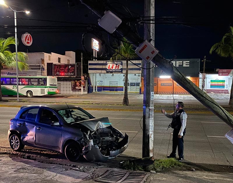 Un automóvil Nissan March color gris fue abandonado después de chocar contra un poste de madera de Telmex, el cual partió, sobre calzada Ejército Mexicano en el municipio de Boca del Río.