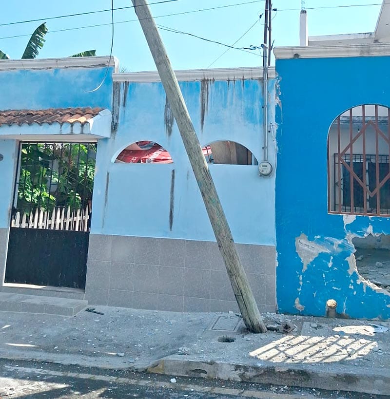 El automóvil impactó primero una pared de concreto perteneciente al ciudadano Óscar Espinosa Pérez, cuyo domicilio está ubicado en la misma avenida. Posteriormente, la camioneta golpeó un poste de madera propiedad de la empresa Teléfonos de México (Telmex), causando severos daños a la infraestructura.