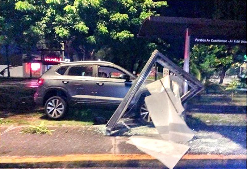 Entonces volanteó hacía la mencionada avenida en sentido contrario, se subió a la banqueta y terminó estrellándose contra la parada de autobuses.