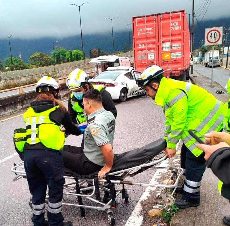Un agente de la Guardia Nacional resultó lesionado en un accidente ocurrido el lunes sobre la lateral del puente de congregación Vicente Guerrero, en Río Blanco, donde la patrulla 19013 chocó contra un tractocamión estacionado.