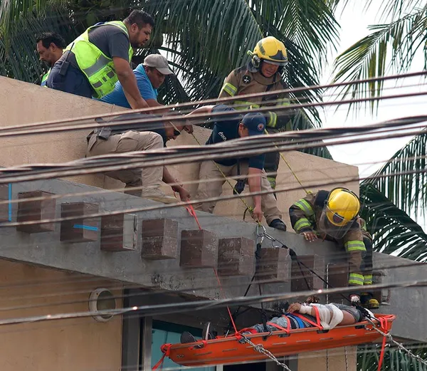 Personal de Protección Civil de Boca del Río participó en el operativo para rescate del albañil lesionado, también acudió la policía naval.