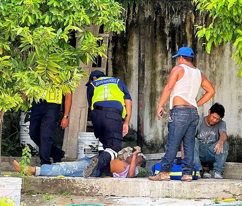 A la altura de la Ejido Primero de Mayo Norte, en Boca del Río, dos albañiles que se encontraban arriba de un andamio, terminaron con golpes y raspones al caer de una altura de cuatro metros.