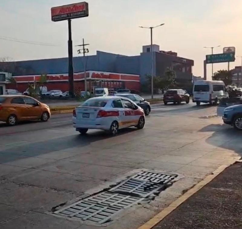 A la altura del fraccionamiento Villa Rica, en la zona norte de la ciudad, una alcantarilla en mal estado provocó que una camioneta se estrellara contra un automóvil, dejando daños materiales y la presencia de personal de emergencias.