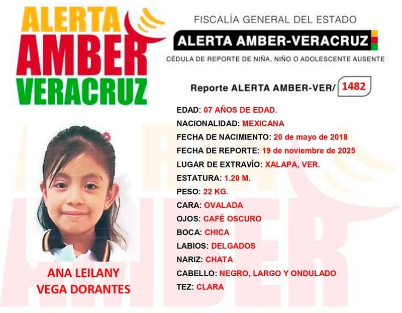 Alerta Amber Veracruz pone a disposición el número para cualquier dato que ayude a dar con el paradero de la niña.