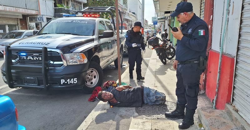En la zona del centro histórico de Veracruz, un sujeto al parecer indigente fue detenido y amarrado, tras despojar del bolso a mujer, movilizándose civiles que le dieron alcance y lo entregaron a los elementos preventivos.